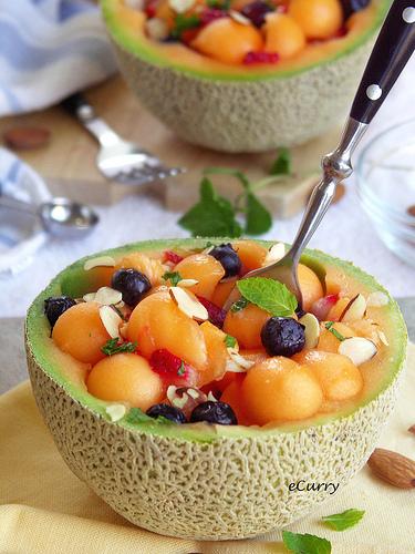 The first one I found looks super delicious and super healthy. It’s a fruit bowl in a cantaloupe, which looks amazing! You could keep it like it is or add and subtract different fruits to this wonderful, refreshing treat.