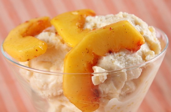 Yum! This next one is nice and fruity too–Fresh Peach Ice Cream with Vanilla Scented Peaches….uhhh….YUM! Stop on over to Recipe Girl for this recipe.