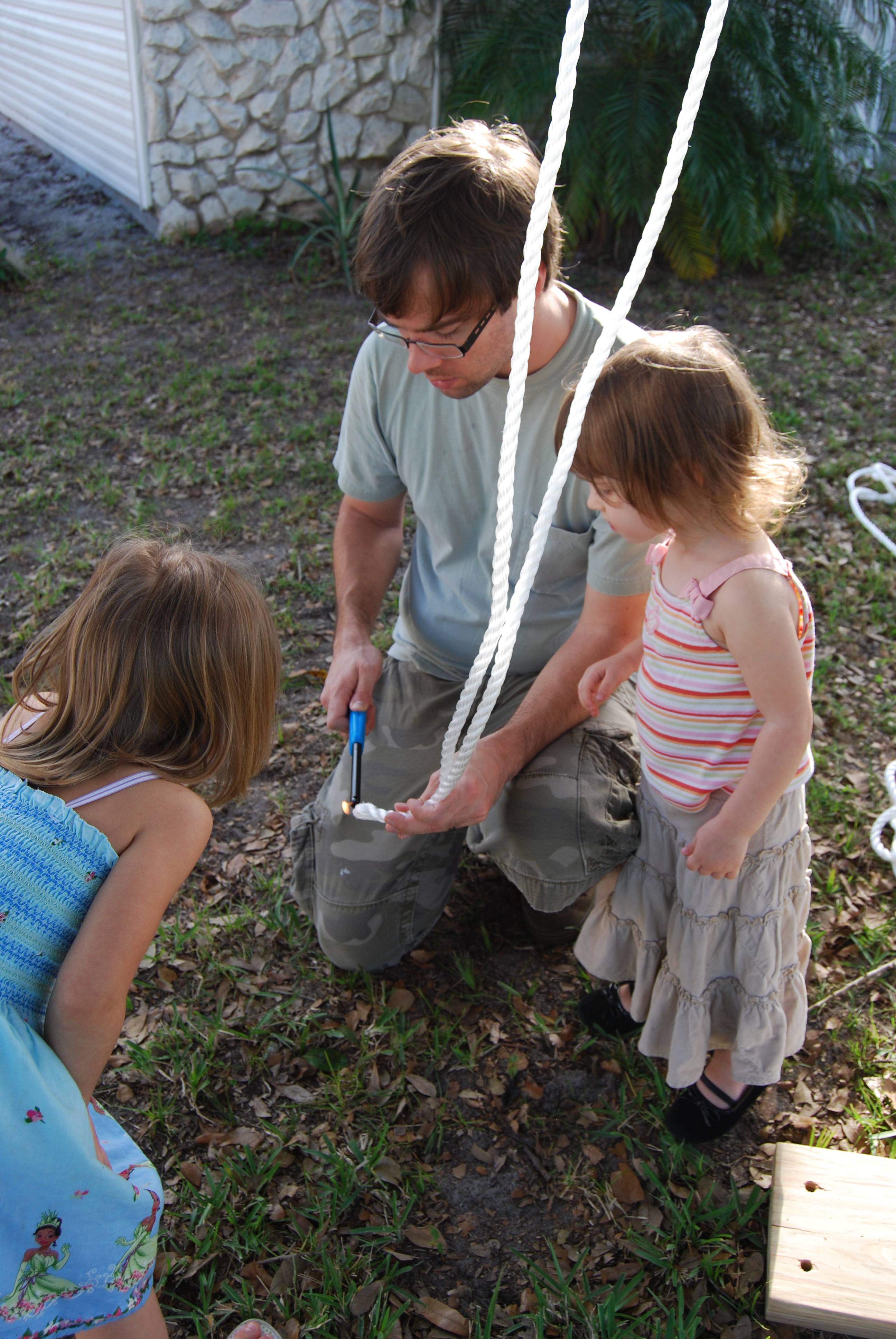 This really is about something Scott made, although I’ve spent all this time so far discussing my part of the project. Scott got the materials ready and hung the swing just like you might think it should be hung. All the while, the girls couldn’t help but make each step an adventure. Kids are the best!