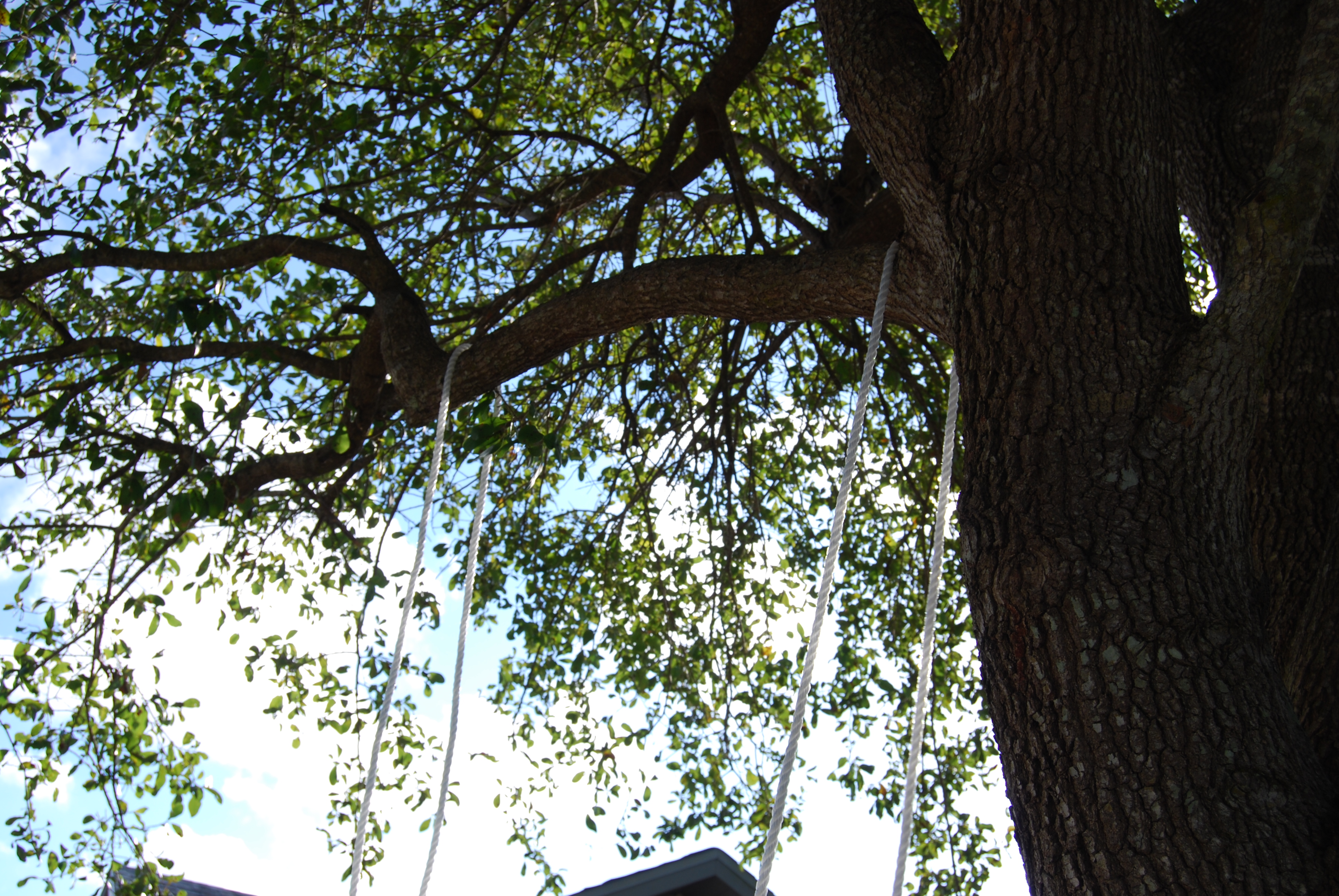 There are many things in life that I find relaxing just by looking at them–an empty beach, sleeping babies, and a lone swing hanging from a tree branch are a few. That last one may not be something that brings you a feeling of relaxation, but I think they are just a wonderful thing. So for Christmas I wanted to give one to the girls. It didn’t happen. We got all the stuff to make it and prepared it just fine…but we never found time on Christmas Eve to hang it. It would’ve been tough to do after they went to bed. In the dark. But I did spend a lot of time prepping it.