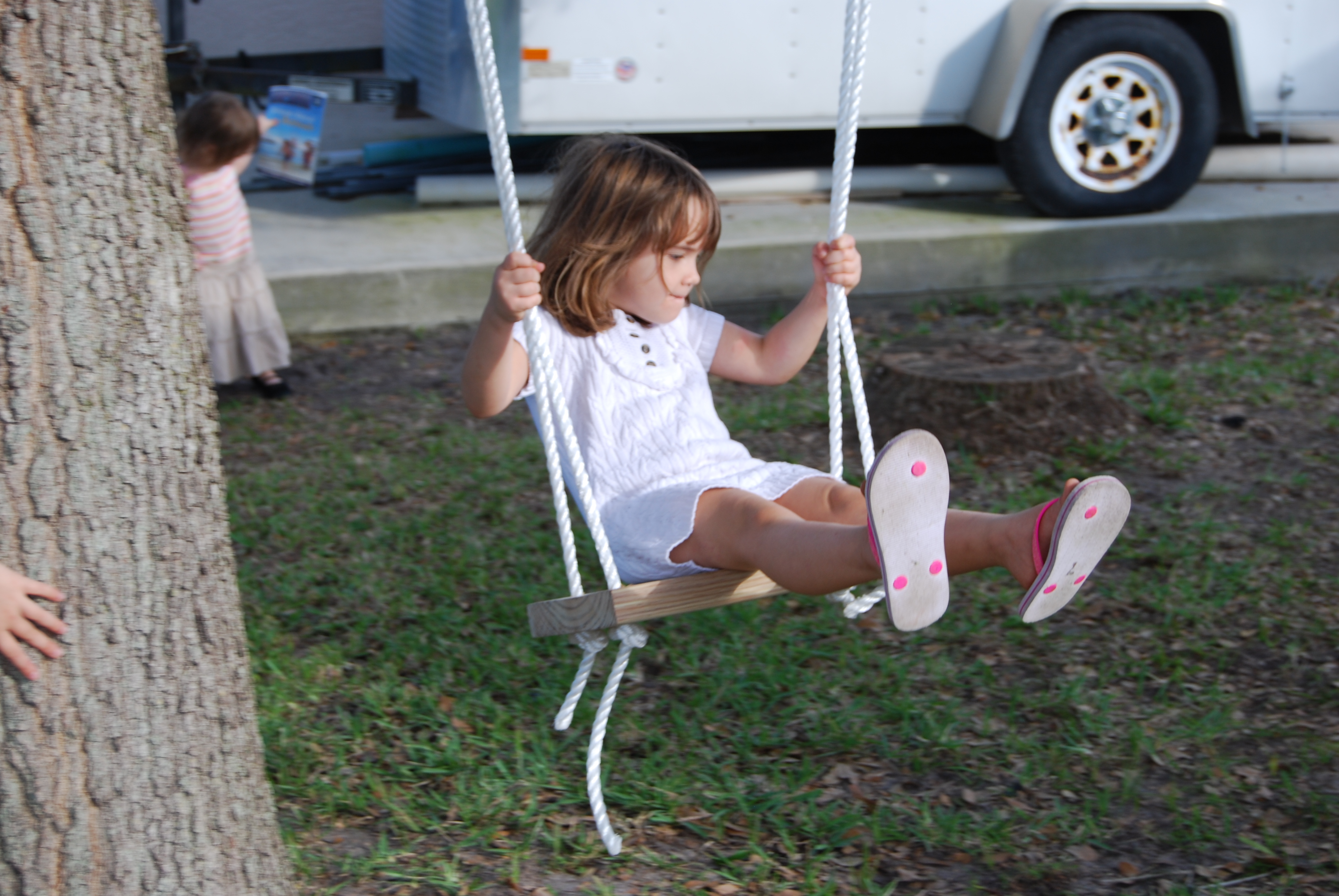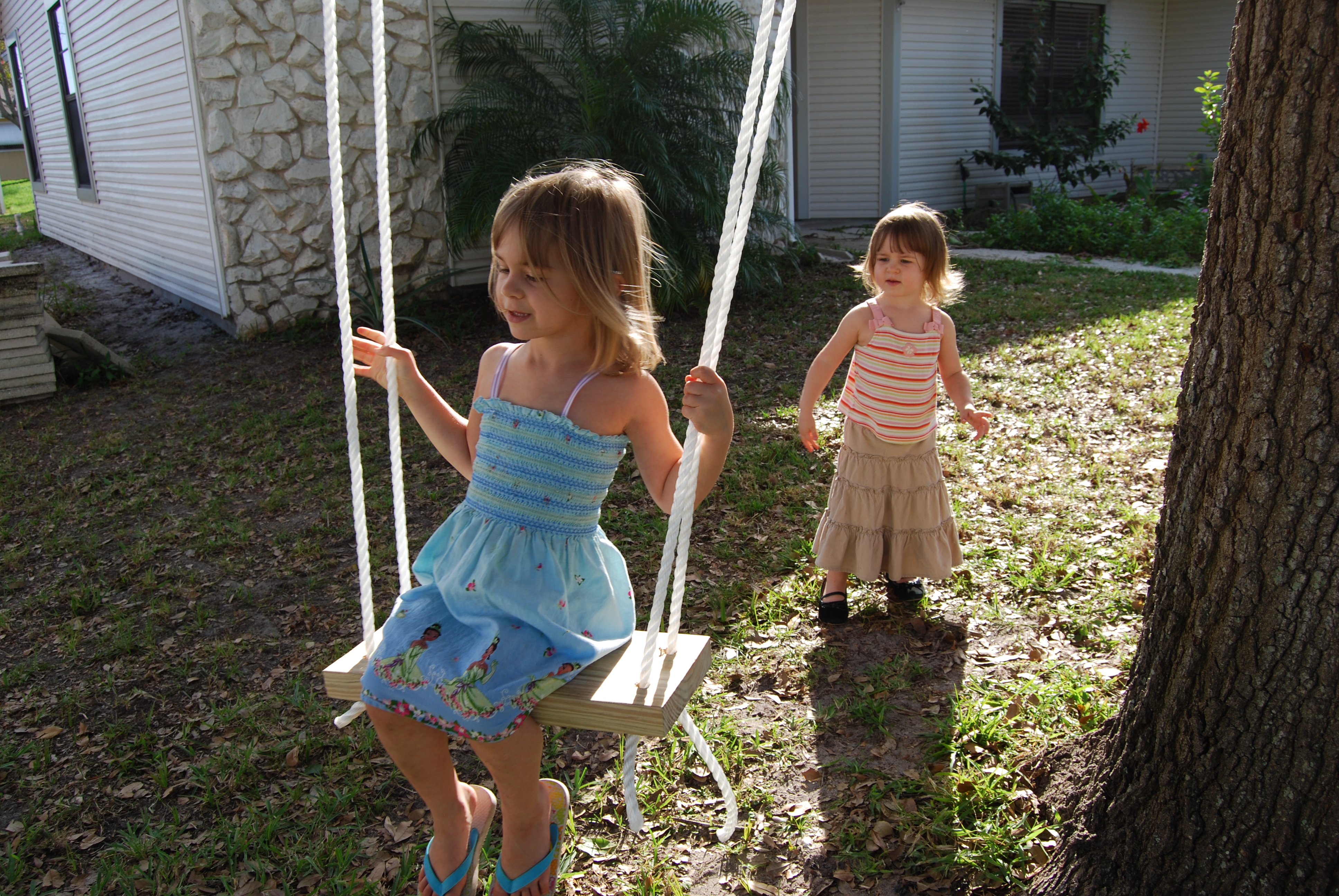 So he did a little internet research (as he usually does) on the best way to hang a tree swing and now it is the best tree swing ever! The girls love it. I love it. And every time I drive by our house and into the driveway I feel a little wave of relaxation and contentment come over me just at the sight of it hanging from the tree in our front yard. It’s the little things, ya know?