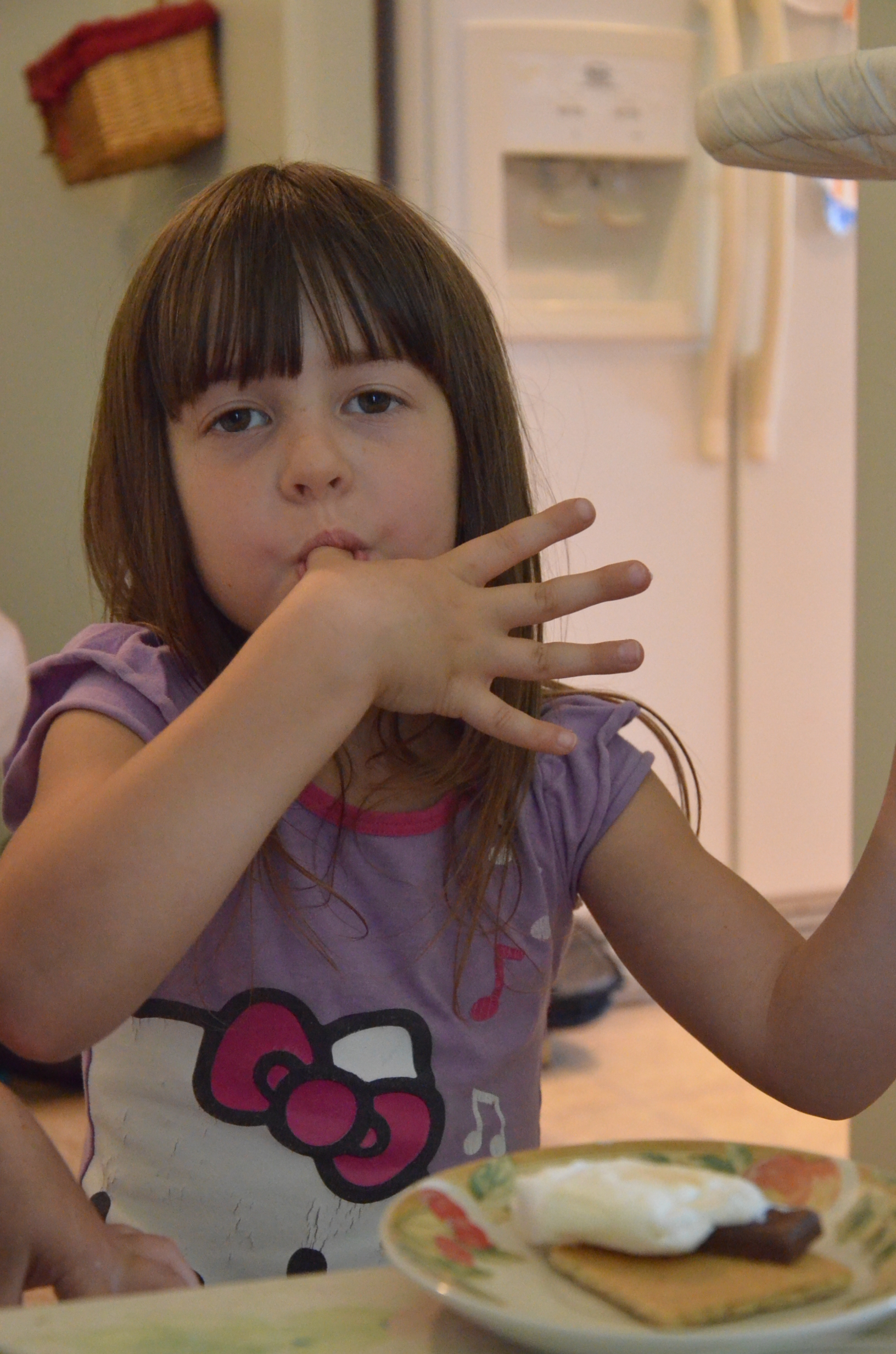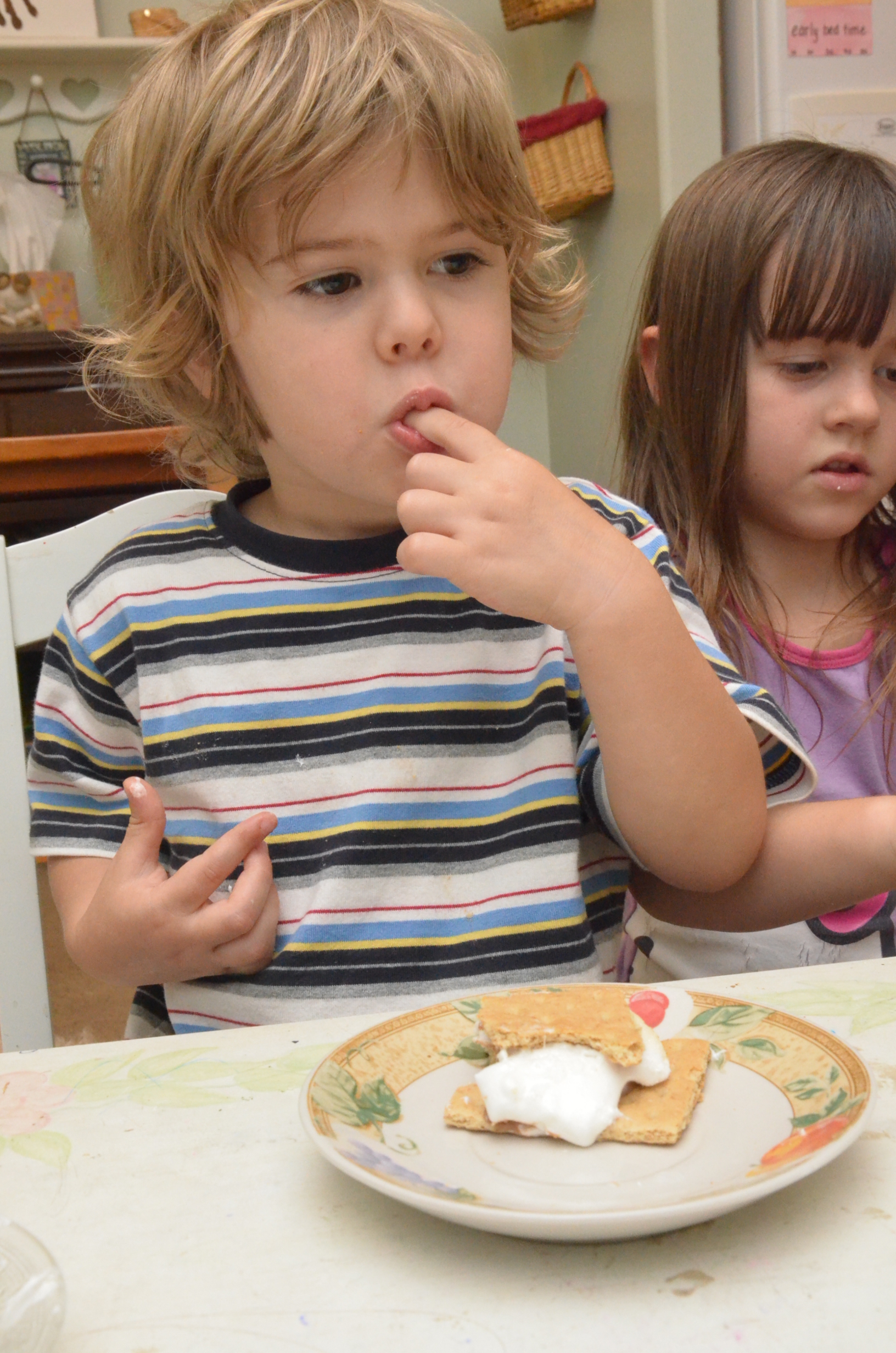 S’mores! We had s’mores….over the stove, but they were still a yummy treat. And they tasted even yummier having been made by those sweet little hands. Sure, they cost me a dollar, but I also got a dollar in change which seemed fair.